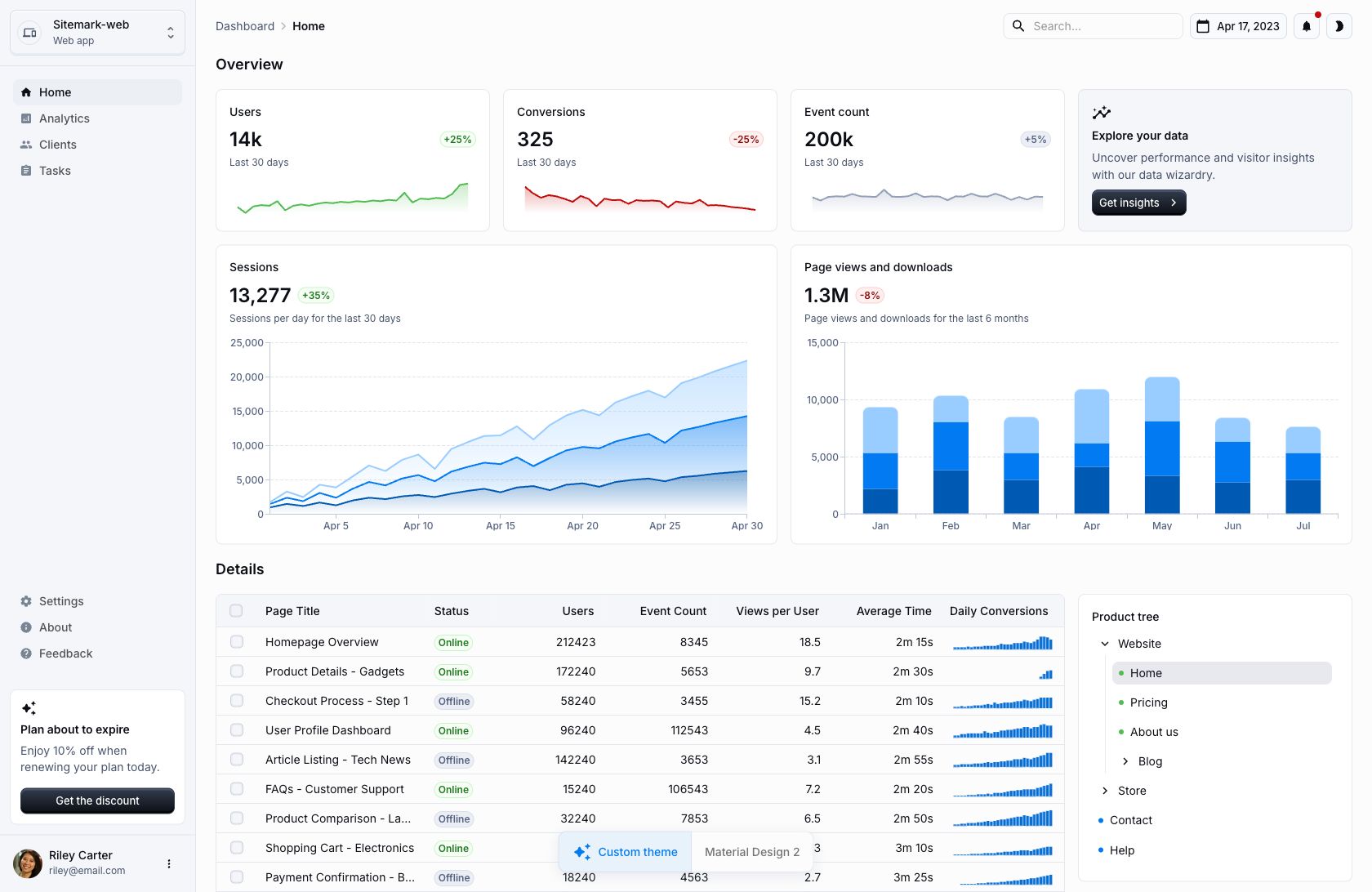 Explore the new and improved free Material UI templates to see all of the new v6 features in action. We've fully revamped the templates to demonstrate some common real-world use cases for our components, and to provide the perfect starting point for your next project.
